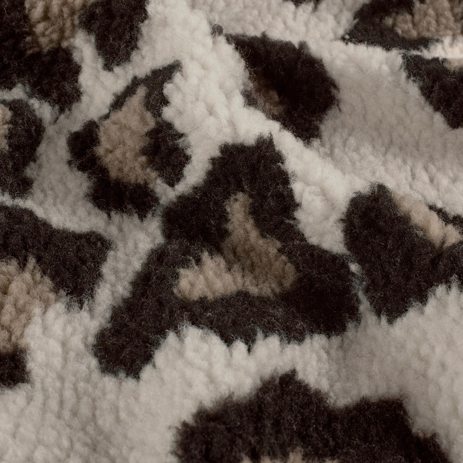 Hochwertiger Sherpa-Fleece mit charaktervollem Camouflage-Jacquard-Muster in Khaki und Grün. Dieser luxuriös weiche Teddystoff bietet außergewöhnliche Wärmeisolation und angenehmen Tragekomfort für die kältere Jahreszeit. Die robuste Verarbeitung und das zeitlose Tarndesign in Olivgrün, Schwarz, Braun und Sand machen ihn zur idealen Wahl für hochwertige Pullover, Jacken, Mäntel und Heimtextilien. Perfekt für anspruchsvolle Näherinnen und Näher, die Qualität und Stil vereinen möchten.