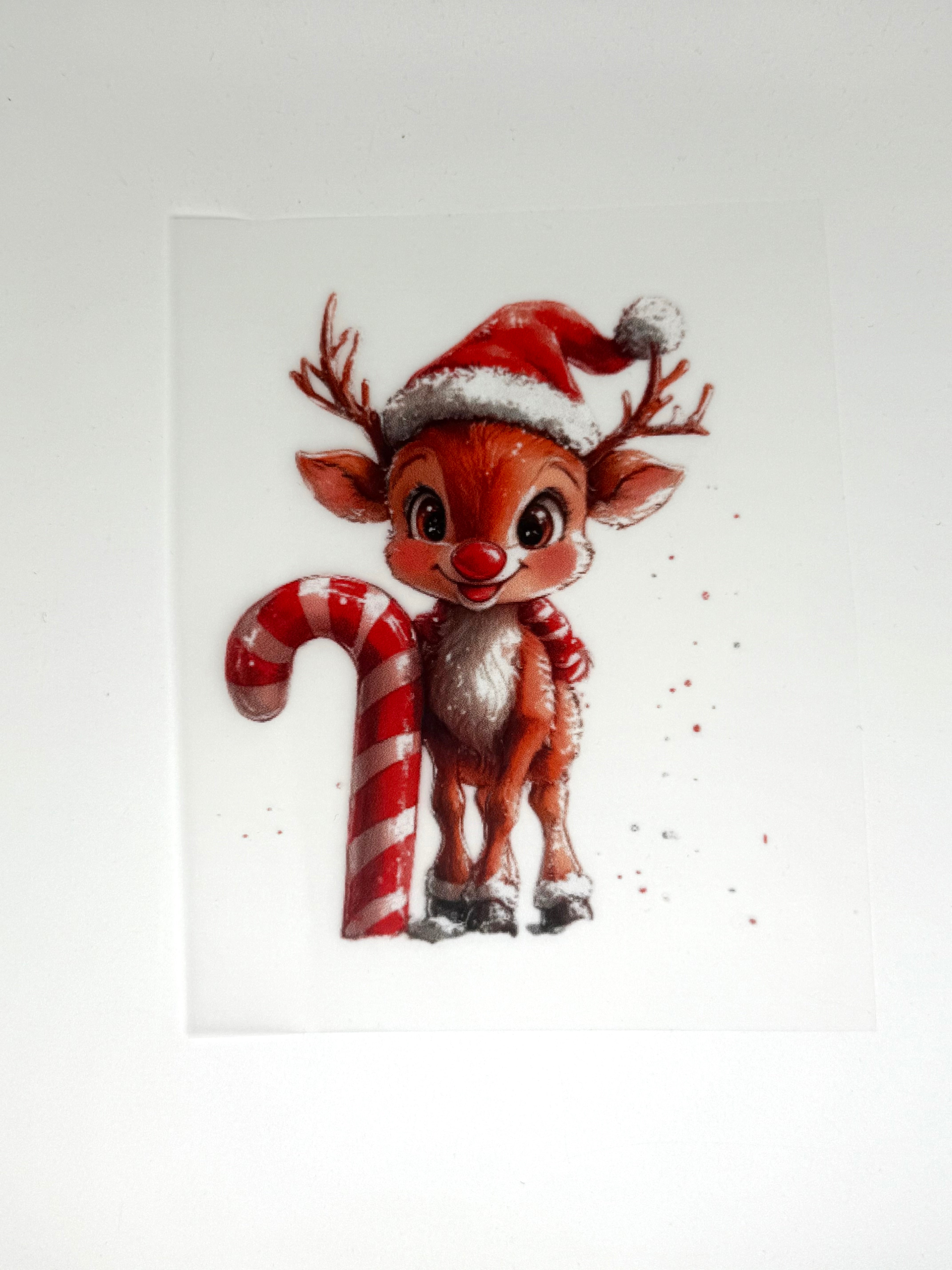 Bügelbild Rentier mit Zuckerstange