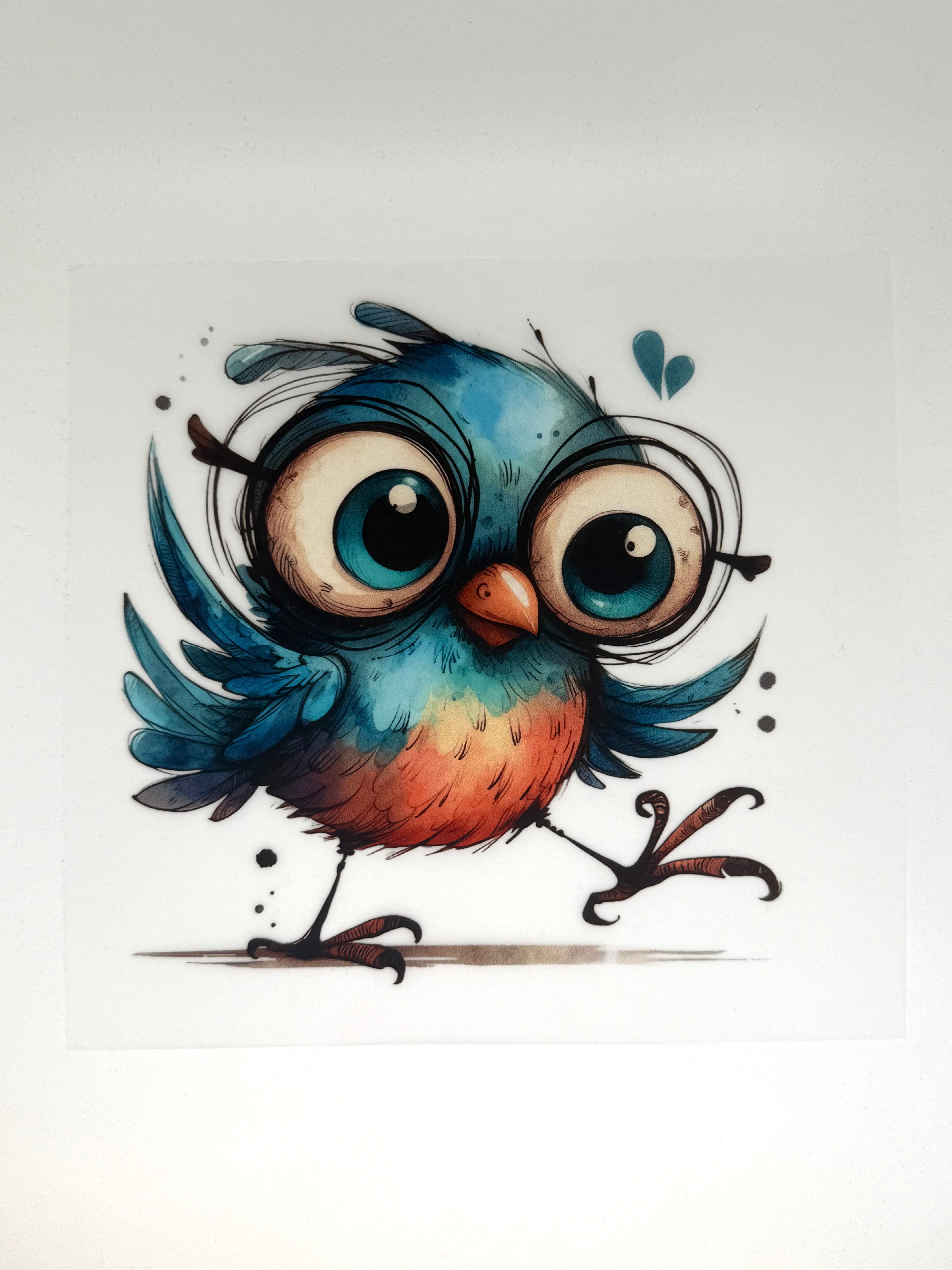 Bügelbild verrückter Vogel blau